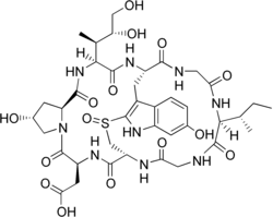 - 1 2 E.C. Kostansek; W.N. Lipscomb; R.R. Yocum; W.E. Thiessen (1978). "Conformation of the Mushroom Toxin β-Amanitin in the Crystalline State". Biochemistry. 17 (18): 3790–3795. doi:10.1021/bi00611a019. PMID 698197.