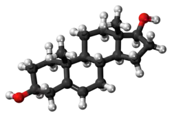 Androstenediol, also known as androst-5-ene-3β,17β-diol, is a naturally occurring androstane steroid.[5] It is closely related structurally to androstenedione (A4; androst-4-ene-3,17-dione), dehydroepiandrosterone (DHEA; androst-5-en-3β-ol-17-one), and testosterone (androst-4-en-17β-ol-3-one), as well as to 3β-androstanediol (5α-androstane-3β,17β-diol).[5]