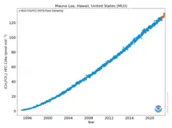 - 1 2 "Table 2.14 (Errata). Lifetimes, radiative efficiencies and direct (except for CH4) GWPs relative to CO2". Archived from the original on 6 July 2017. Retrieved 11 July 2017.
