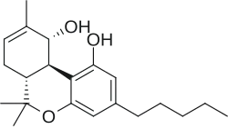 10-Hydroxy-THC (10α-OH-Δ8-THC) is a phytocannabinoid, identified in trace amounts as a component of Cannabis sativa in 2015. It has two epimers, 10α-THC and 10β-THC, of which the α epimer is the pharmacologically active component with similar or slightly higher potency compared to THC itself, while the β epimer is around 100x weaker in vitro and only partially substituted for THC in animal tests.[1] It can also be made synthetically, and has been sold as a designer drug.