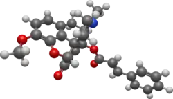 14-Cinnamoyloxycodeinone is the most potent example in a series of opiate analgesic drugs discovered in the 1960s, with over 100 times the potency of morphine.[1] It is a derivative of hydroxycodeinone, being the 14-cinnamate ester.[2] In another paper, Buckett assigns the potency as 177 with a range (depending on animal and test) of 101–310×.[3] It may be of interest to researchers that the allyl group in this compound and in allylprodine overlay very closely.