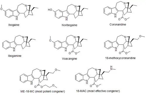 - ↑ Maisonneuve IM, Glick SD (June 2003). "Anti-addictive actions of an iboga alkaloid congener: a novel mechanism for a novel treatment". Pharmacology, Biochemistry, and Behavior. 75 (3): 607–18. doi:10.1016/S0091-3057(03)00119-9. PMID 12895678. S2CID 26758480.