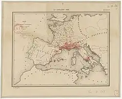 In 1883 it reached Egypt and in the course of a few months, tens of thousands of victims died.[1] (Seeː 1883 outbreak in Egypt) Further westward cholera outbreaks occurred in April 1884 in the naval base Toulon,[5] France, with smaller outbreaks in Marseille, Paris, and other cities, affecting 10,000 people all over France.[2] In 1885, some of the same areas were again infected. Italian migrant workers brought cholera from France to Italy, with a serious outbreak in the city of Naples in August–September 1884.[11] There were minor outbreaks in Italy in 1886-87 without causing epidemics.[2] The outbreak provoked a poisoning "phobia" directed primarily against Gypsies.[4]