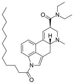 • CCCCCCCCCCCC(=O)N1C=C2C[C@@H]3C(=C[C@H](CN3C)C(=O)N(CC)CC)C4=C2C1=CC=C4