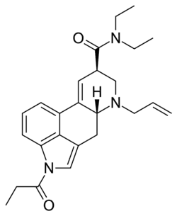 1P-AL-LAD is a derivative of lysergic acid diethylamide (LSD) which has psychedelic effects and has been sold as a designer drug. It is believed to act as a prodrug for AL-LAD and produces a head-twitch response in animal studies.[1]