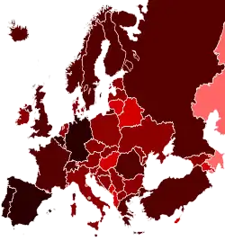 Number of European countries with confirmed cases: 50 1Since 18 November 2009 the Ukrainian ministry of health publishes no separate statistics on cases of A/H1N1 influenza or swine flu.[7] According to the ministry as of 21 January 2010 1,019 people have died of flu and flu-like illnesses and its complications (pneumonia) in Ukraine.[8] | ||