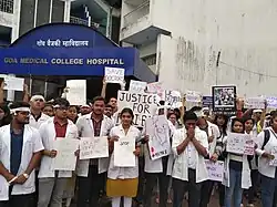 On 11 June 2019, following the assault of two junior doctors at Nil Ratan Sircar Medical College and Hospital (NRSMCH) the previous night, junior doctors in Kolkata began protesting and demanded that the Chief Minister of West Bengal, Mamata Banerjee, should intervene and provide adequate security to medical professionals. The protests caused a collapse of healthcare facilities in the state.[1][2][3] Protests continued through 13 June, despite attempts at mediation, resulting in the chief minister issuing an ultimatum to the protesting doctors.[4][5] The doctors ignored the ultimatum, asking the government to meet their demands for security[6] and for the chief minister to give them a public apology.[7]