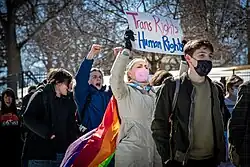 The 2020s anti-LGBTQ movement in the United States is an ongoing political backlash from social conservatives and the "MAGA" faction of the Republican Party against LGBTQ movements. It has included legislative proposals of bathroom use restrictions, bans on gender-affirming care, anti-LGBTQ curriculum laws, attacks on inclusive language, laws against drag performances, book bans, boycotts, and conspiracy theories around grooming.[1] Between 2018 and 2023, hundreds of anti-LGBTQ laws were considered, with more than one hundred passed into law.[2][3] Targeting of transgender people escalated under the second Donald Trump administration.