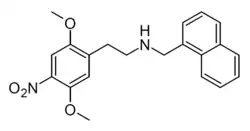 25N-N1-Nap is a phenethylamine derivative from the 25-NB class, which acts as a potent agonist at the 5-HT2A receptor with weaker activity at 5-HT2B and 5-HT2C. 25N-N1-Nap is a biased agonist, producing robust activation of 5-HT2A coupled signaling pathways mediated by beta arrestin 2, but with little or no activation of pathways mediated via Gq. In animal studies it produces antipsychotic-like effects but without producing the head-twitch response associated with psychedelic activity.[1][2]