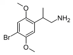 - ↑ Glennon RA, Bondarev ML, Khorana N, Young R, May JA, Hellberg MR, McLaughlin MA, Sharif NA (November 2004). "Beta-oxygenated analogues of the 5-HT2A serotonin receptor agonist 1-(4-bromo-2,5-dimethoxyphenyl)-2-aminopropane". J Med Chem. 47 (24): 6034–6041. doi:10.1021/jm040082s. PMID 15537358. Archived from the original on 2024-05-23.