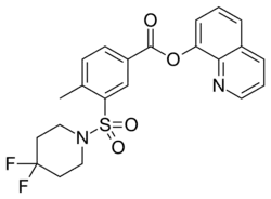 2F-QMPSB (SGT-13) is an arylsulfonamide-based synthetic cannabinoid that is a fluorinated derivative of QMPSB and has been sold as a designer drug.[1] Its identification was first reported by a forensic laboratory in Italy in January 2019,[2] and it was made illegal in Latvia shortly afterwards.[3][4] Fluorination of the tail group is a common strategy to increase potency at cannabinoid receptors which is seen in many related series of compounds.[5][6]