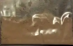 Given enough time in unfavorable conditions, 4-AcO-DMT can sometimes turn into a degraded form which is brown in color and can even progress into a brown/black tar-like substance. Researchers hypothesize this is a polymerization reaction and is said to have no effect on the potency of the substance. Preliminary GCMS analysis of the closely related homologue 4-AcO-DET suggests that this degraded form of 4-AcO-DMT consists mainly of the hydroxy form of the parent molecule.[38]