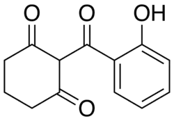 As part of toxicology studies, Martin Ellis at the ICI Central Toxicology Laboratory identified triketone inhibition of tyrosine catabolism in rat liver and also found that tyrosine hydroxylase was not inhibited by the triketones.[41] He furthermore found that the urine of rats treated with III showed elevated levels of both p-hydroxyphenylpyruvate and p-hydoxyphenyllactic acids. These results suggested that p-hydroxyphenylpyruvate dioxygenase (HPPD) was the enzyme that was inhibited, a fact which was confirmed by S. Lindstedt.[42] Further tests established that HPPD was the enzyme inhibited in plants as well as mammals.[40]