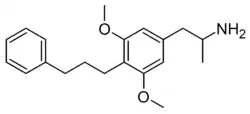 4-PhPr-3,5-DMA, also known as 4-(3-phenylpropyl)-3,5-dimethoxyamphetamine, is a serotonin receptor modulator of the phenethylamine and amphetamine families.[1] It is structurally related to the DOx drugs but has one of its methoxy groups in the 3 position instead of 2 position on the phenyl ring and has a bulky substitution at the 4 position of the phenyl ring.[1]