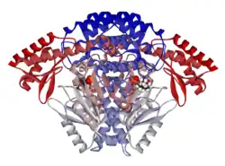 Ribbon diagram of a DOPA decarboxylase dimer.[1]
