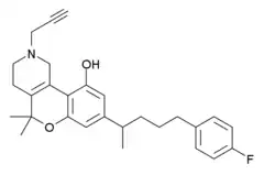- ↑ Guterman A, Somani P, Bachand RT (1979). "Phase-I evaluation of 5-5-dimethyl-10-hydroxy-8-[5-(4-fluorophenyl)-2-pentyl]-2-(2-propynyl-1, 2, 3, 4-tetrahydro-5h-[1] benzopyrano [3, 4-d] pyridine (a-41988)-novel benzopyran derivative". Clinical Pharmacology and Therapeutics. 25: 227.