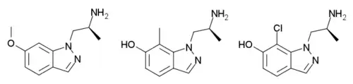 12. May JA, Dantanarayana AP, Zinke PW, McLaughlin MA, Sharif NA (January 2006). "1-((S)-2-aminopropyl)-1H-indazol-6-ol: a potent peripherally acting 5-HT2 receptor agonist with ocular hypotensive activity". Journal of Medicinal Chemistry. 49 (1): 318–28. doi:10.1021/jm050663x. PMID 16392816.