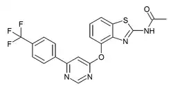 AMG-517 is a drug which acts as a potent and selective blocker of the TRPV1 ion channel.[1][2] It was developed as a potential treatment for chronic pain, but while it was an effective analgesic in animal studies it was dropped from human clinical trials at Phase I due to producing hyperthermia as a side effect, as well as poor water solubility. It is still used in scientific research into the function of the TRPV1 channel and its role in pain and inflammation, and has been used as a template for the design of several newer analogues which have improved properties.[3][4][5][6][7]