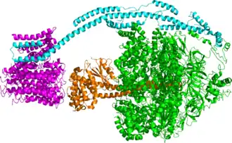 - ↑ PDB: 5ARA; Zhou A, Rohou A, Schep DG, Bason JV, Montgomery MG, Walker JE, et al. (October 2015). "Structure and conformational states of the bovine mitochondrial ATP synthase by cryo-EM". eLife. 4 e10180. doi:10.7554/eLife.10180. PMC 4718723. PMID 26439008.