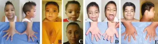 | Symptoms | Broad hands and feet, wide set eyes, low set ears, drooping lower lip[1] |