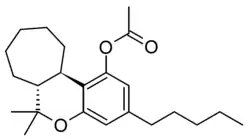 Abeo-HHC acetate is a semi-synthetic derivative of tetrahydrocannabinol, first described in the 1980s. It is synthesised from delta-11-tetrahydrocannabinol, which can be made to undergo a ring expansion reaction via a hydrazone intermediate.[1][2] It is structurally similar to HHC-acetate except that the methylated cyclohexyl ring has been replaced by a cycloheptane.