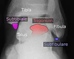 Os trigonum (further described below) may also be seen on an ankle X-ray.