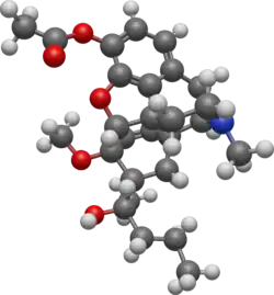 Acetorphine is a potent opioid analgesic, up to 8700 times stronger than morphine by weight.[1] It is a derivative of the more well-known opioid etorphine, which is used as a very potent veterinary painkiller and anesthetic medication, primarily for the sedation of large animals such as elephants, giraffes and rhinos.