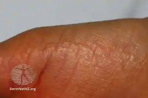 - ↑ James, William; Berger, Timothy; Elston, Dirk (2005). Andrews' Diseases of the Skin: Clinical Dermatology. (10th ed.). Saunders. ISBN 0-7216-2921-0.