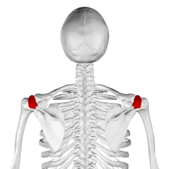 ![]() Skeleton, posterior view. Acromion of each scapula shown in red. | |