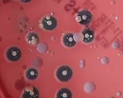 As part of the genus Actinobacillus, Actinobacillus equuli is gram negative.[1] A. equuli displays negative results after inoculation into motility agar indicating a lack of motility.[22] A. equuli is equipped with catalase and urease enzymes and therefore yield positive results for these tests. Although facultatively anaerobic, A. equuli can survive in environments exposed to oxygen as it contains the enzyme cytochrome oxidase for use in the electron transport chain.[3][24] Differentiation between A. equuli subsp. equuli and A. equuli subsp. haemolyticus can be made using sheep's blood agar or the CAMP test upon the absence or presence of beta-haemolysis, respectively.[3][25]