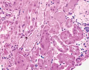 - ↑ Racusen LC, Fivush BA, Li YL, Slatnik I, Solez K (April 1991). "Dissociation of tubular cell detachment and tubular cell death in clinical and experimental 'acute tubular necrosis'". Laboratory Investigation. 64 (4): 546–56. PMID 1673163.