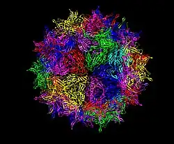 - ↑ Xie Q, Bu W, Bhatia S, Hare J, Somasundaram T, Azzi A, et al. (August 2002). "The atomic structure of adeno-associated virus (AAV-2), a vector for human gene therapy". Proceedings of the National Academy of Sciences of the United States of America. 99 (16): 10405–10. Bibcode:2002PNAS...9910405X. doi:10.1073/pnas.162250899. PMC 124927. PMID 12136130.