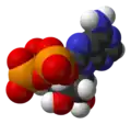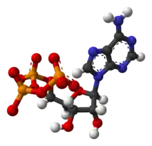 Adenosine triphosphate (ATP) is a nucleoside triphosphate[2] that provides energy to drive and support many processes in living cells, such as muscle contraction, nerve impulse propagation, and chemical synthesis. Found in all known forms of life, it is often referred to as the "molecular unit of currency" for intracellular energy transfer.[3]