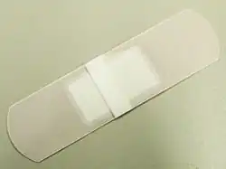 An adhesive bandage, also called a sticking plaster, sticky plaster, medical plaster, or simply plaster in British English, is a small medical dressing used for injuries not serious enough to require a full-size bandage. They are also known by the genericized trademarks of Band-Aid (as "band-aid" or "band aid" in Australia, Canada, India and the US) or Elastoplast (in the UK).
