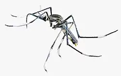 Aedes albopictus (synonym Stegomyia albopicta), from the mosquito (Culicidae) family, also known as the (Asian) tiger mosquito or forest mosquito, is a species of mosquito native to the tropical and subtropical areas of Southeast Asia. In the past few centuries, it has spread to many countries through the transport of goods and international travel.[2] It is characterized by the white bands on its legs and body.