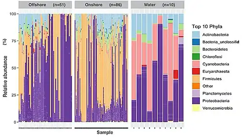 - ↑ Li, Yingdong; Zheng, Liping; Zhang, Yue; Liu, Hongbin; Jing, Hongmei (2019). "Comparative metagenomics study reveals pollution induced changes of microbial genes in mangrove sediments". Scientific Reports. 9 (1): 5739. Bibcode:2019NatSR...9.5739L. doi:10.1038/s41598-019-42260-4. PMC 6450915. PMID 30952929.