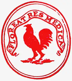 There were 10 founding members of the Club who attended the first dinner on 2 April 1773.[4] The minutes of that meeting record that 'The Aesculapian Club was conceived in a happy moment, and in due time brought forth. Doctors Duncan and Hamilton, Messrs Hay, Bell, McLure, and Dewar assisted at the birth on the first Friday of April 1773. They also stood as godfathers at the christening. The usual rites and ceremonies usual on these occasions, such as eating a good supper, etc., were concluded with a bumper recommendatory of the club to the peculiar care of Apollo, of Bacchus, and of Venus, Floreat Res Medica. Vivat Veritas.' The club was named after Asclepius, the Greek God of medicine, more usually known by the Roman name, Aesculapius. Aesculapius was the son of Apollo, who was himself both the God of physic and the sender of disease.[6] The badge of the Club consists of the Latin motto 'Floreat Res Medica' (Let the medical field flourish) and a cockerel. Cockerels adorn many of the fixtures and fittings of the Royal College of Physicians of Edinburgh.[7] In Greek mythology cockerels were dedicated to Apollo (because their crowing gave notice of the rising sun) and to Aesculapius (because their example of 'early to bed and early to rise' was associated with good health).[8]