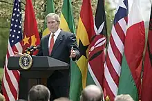 April 25 was designated as Malaria Awareness Day in 2007 by President George W. Bush, who called on Americans to join in on the goal to eradicate malaria on the African continent.[30] President Bush described it as a day when "we focus our attention on all who suffer from this terrible disease -- especially the millions on the continent of Africa. We remember the millions more who died from this entirely preventable and treatable disease." President Bush shared the White House's strategic plan against malaria, which included endeavors to distribute bed nets with the New York-based nonprofit group Malaria No More.[31]