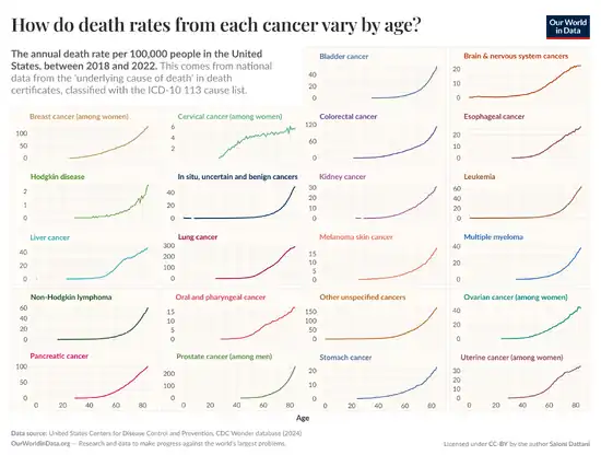 - ↑ "cancer risk increase with age". owid. Retrieved 9 July 2025.
