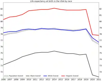 - ↑ Hill, Latoya; Artiga, Samantha (23 May 2023). "What is Driving Widening Racial Disparities in Life Expectancy?". kff.org.