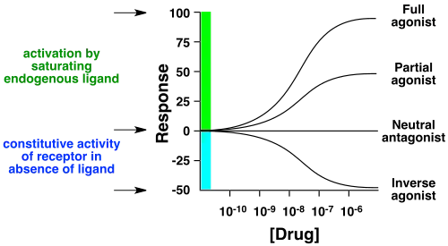 - ↑ Kenakin T (March 2001). "Inverse, protean, and ligand-selective agonism: matters of receptor conformation". FASEB Journal. 15 (3): 598–611. CiteSeerX 10.1.1.334.8525. doi:10.1096/fj.00-0438rev. PMID 11259378. S2CID 18260817.