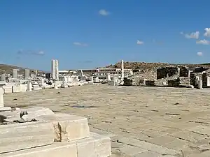 | An ancient agora in Delos, Greece. One of the public spaces after which the condition is named. | |
