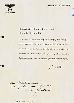 ![]() Hitler's order for Aktion T4 | |