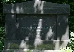 Luise Kossel died in 1913 of acute pancreatitis. Kossel died quietly on 5 July 1927, after a recurring attack of angina pectoris.[1] He is buried in Heidelberg, Germany.