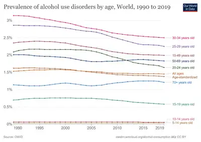 - ↑ Saunders, JB; Aasland, OG; Amundsen, A; Grant, M (1993). "Alcohol consumption and related problems amongst primary health care patients:WHO collaborative Project on Early Detection of Persons with Harmful Alcohol Consumption 1". Addiction. 88 (12): 349–362. doi:10.1111/j.1360-0443.1993.tb00822.x. PMID 8461852.