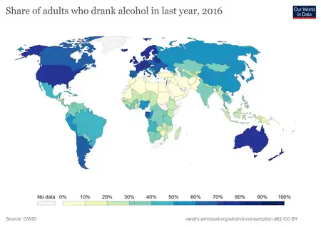 - ↑ "Global status report on alcohol and health 2014". World Health Organization. Archived from the original on 15 September 2017. Retrieved 24 July 2017. Archived 15 September 2017 at the Wayback Machine