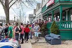 Research on the societal benefits of alcohol is rare, but a 2017 study suggested there it was beneficial.[65] Alcohol is often used as a social lubricant; it increases occurrences of Duchenne smiling, talking, and social bonding, even when participants are unaware of their alcohol consumption or lack thereof.[66] In a study of the UK, regular drinking was correlated with happiness, feeling that life was worthwhile, and life satisfaction. According to a causal path analysis the cause was vice versa; alcohol consumption was not the cause, but rather that the life satisfaction resulted in greater happiness and an inclination to visit pubs and develop a regular drinking venue. City centre bars were distinguished by their focus on maximizing alcohol sales. Community pubs had less variation in visible group sizes and longer, more focused conversations than those in city centre bars. Drinking regularly at a community pub led to higher trust in others and better networking with the local community, compared to non-drinkers and city centre bar drinkers.[65]