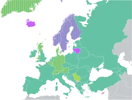 - partial restriction: Belgium, Estonia, France, Ireland, Italy, Malta, Netherlands, Sweden, UK
