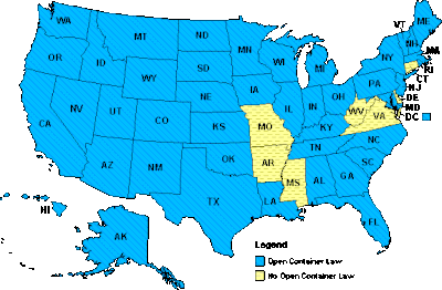 Most states also do not allow open containers of alcohol inside moving vehicles. The federal Transportation Equity Act for the 21st Century of 1999 mandates that, if a state does not prohibit open containers of alcohol inside moving vehicles, then a percentage of its federal highway funds will be transferred instead to alcohol education programs each year. As of December 2011, only one state (Mississippi) allows drivers to consume alcohol while driving (below the 0.08% limit), and only five states (Arkansas, Delaware, Mississippi, Missouri, and West Virginia) allow passengers to consume alcohol while the vehicle is in motion.