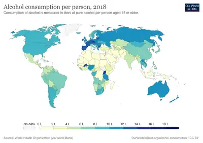 More than 90% heavy drinkers develop fatty liver, about 25% alcoholic hepatitis, and 15% cirrhosis.[3] ALD is the most common form of long-term liver disease globally.[2] Europeans are most commonly affected.[1] Out of the 1.3 million deaths due to chronic liver disease in 2016, an estimated 27% were due to alcohol.[2] An additional 245,000 deaths occurred as a result of liver cancer due to alcohol.[2]